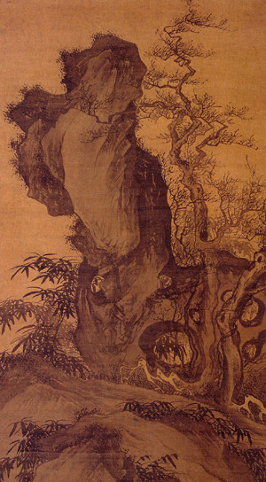 明 唐寅《灌木丛篠图轴》 纵109.4厘米 横58.9厘米