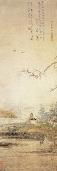 明 仇英《沙丁鸳鸯图》 纵78.9 厘米 横27.4 厘米