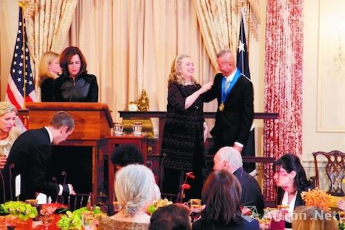 图为旅美的中国艺术家蔡国强2012年荣获美国国务院艺术勋章
