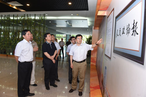 图为人民政协报社党组书记、总编辑周北川(左一)向合肥市政协主席杨思松(左一)、原主席董昭礼(左三)介绍人民政协报社发展情况。人民政协网记者 姜贵东 摄
