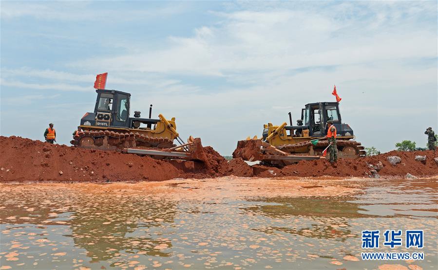 当日,在武警水电二总队官兵及当地施工人员连续奋战47小时后,江西鄱阳县古县渡镇向阳圩决口顺利合龙。