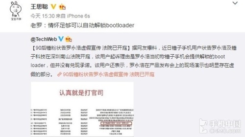 其实,相比于老罗和这名锤粉约战视频网站,个人倒是对老罗约战王思聪挺感兴趣的。在这场大战中,国民老公王思聪也在一旁煽风点火,假借老罗之口称,情怀足够可以自动解锁bootloader。真是看热闹不嫌事儿大,坐等老罗跟王思聪优酷见!