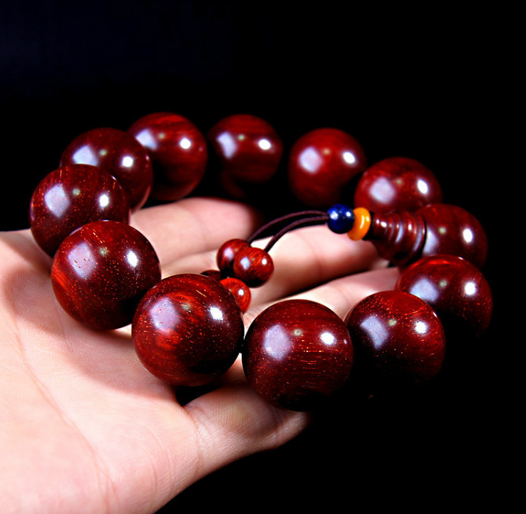 3、 数量:鸡血紫檀不常见,数量也不太多??捎霾豢汕?,鸡血紫檀棕眼稀少,木质呈半透明状,如美玉般润泽,木质呈深红,褐红,紫红色,散发出鸡血紫檀独有的珍贵,大紫大红,大富大贵。鸡血紫檀只站小叶紫檀木中的1%,可遇难求。