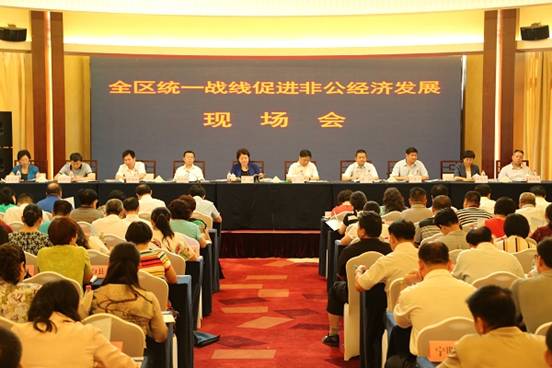会议就全区统一战线促进非公经济发展提出五点意见:一要建立大统战服务和促进非公有制经济健康发展的体制机制。聚焦非公有制经济人士的痛点和关切点,在推动政策落地、落细、落实上做实功、出实招、求实效。二要引导非公有制经济人士健康成长。以“四信”为主要内容,推动理想信念教育实践活动在“深化”上破题见效,明确目标、突出重点,引导非公有制经济人士加强自我学习、自我教育、自我提升。三要促进形成新型政商关系。要着眼让领导干部与民营企业家“亲”起来,加强和改进联谊交友工作,建立健全政企沟通协商机制;着眼让政商关系“清”起来,推动规范双方交往的制度建设,制定具体明确的行为准则。四要规范非公有制经济人士政治安排。坚持标准,严格程序,细化和落实好“三强一好”用人标准,为规范政治安排、提高人选质量提供制度保障,引导代表人士成为“两个健康”的表率,扭转重选拔轻培养、重安排轻管理的现象。五要推动统战工作向商会组织有效覆盖?;韧滋剿魍痴焦ぷ飨蛏袒嶙橹行Ц哺堑恼仿肪?,牢牢把握中国特色商会组织的发展方向,坚持党的领导,坚持统战性、经济性和民间性有机统一,在推进改革中落实好工商联对商会的指导、引导和服务职能,增强工商联的凝聚力、影响力、执行力,继续加强县级工商联建设。