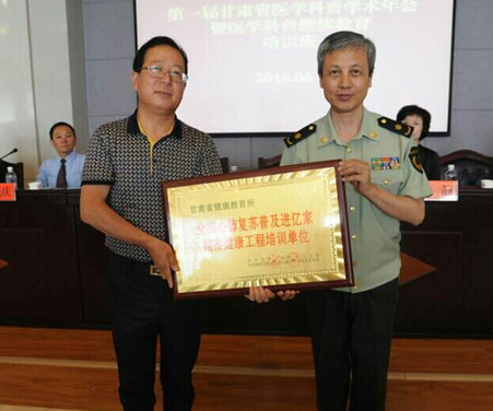 在近日召开的第一届甘肃省医学科普学术年会上,甘肃省健康教育所通过中华医学会科学普及分会被授予“中华精准健康传播基地”、“全国心肺复苏普及进亿家精准健康工程培训单位”,成为全国首家被授予“中华精准健康传播基地”和“全国心肺复苏普及进亿家精准健康工程培训单位”的健康教育机构。