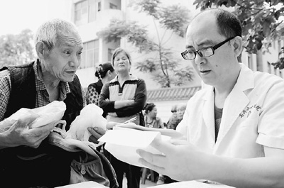 四川省华蓥市高兴镇医疗服务队医生在马家嘴村为村里老人进行义诊。周松林摄