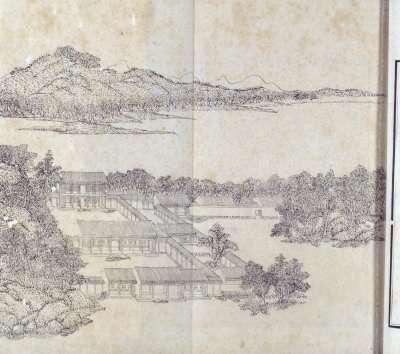 《御制避暑山庄三十六景诗》又称《避暑山庄诗》,是描绘清代皇家园囿避暑山庄之建筑风貌和景致的诗文图画集。图绘避暑山庄三十六景,景观皆为承德行宫仿江南名园胜迹所成,始于“烟波致爽”,终于“水流云在”。36幅图的诗题之下皆有小记,诗句有注释,注释之引文出处用朱线标出,并有朱色句读。是书所绘景物灿彰,界画严整,镌刻亦精致,但构图布景略嫌板滞,缺少灵动之气。