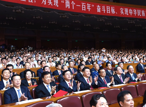 6月29日晚,庆祝中国共产党成立95周年音乐会《信念永恒》在北京举行。习近平、李克强、张德江、俞正声、刘云山、王岐山、张高丽等党和国家领导人与首都各界3000多人共同观看音乐会。新华社记者 饶爱民 摄