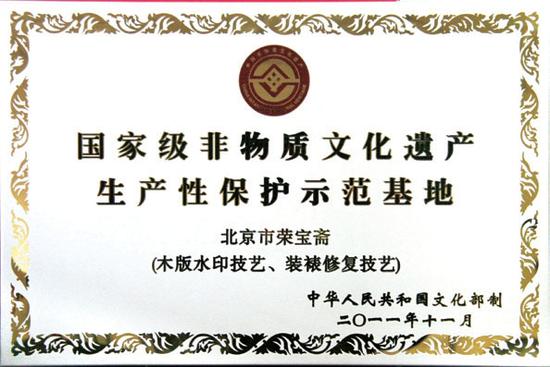 荣宝斋多年以来,薪火相传,与时俱进。为了更好地继承中华民族文化、保护和传承文化遗产,几代人做出了不懈的努力。2006年5月,“木版水印技艺”正式被国务院列为“国家级非物质文化遗产”。传统技艺得到了很好的保护、传承和发展,文化影响力得到加强,传统文化魅力得到弘扬和彰显,取得了较好的社会效益和经济效益,得到了社会各界的广泛赞誉。使得这一中华文化瑰宝得以继承和发展。