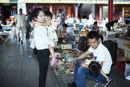 摊主夫妇和他们的双胞胎女儿。摄影:吕萌