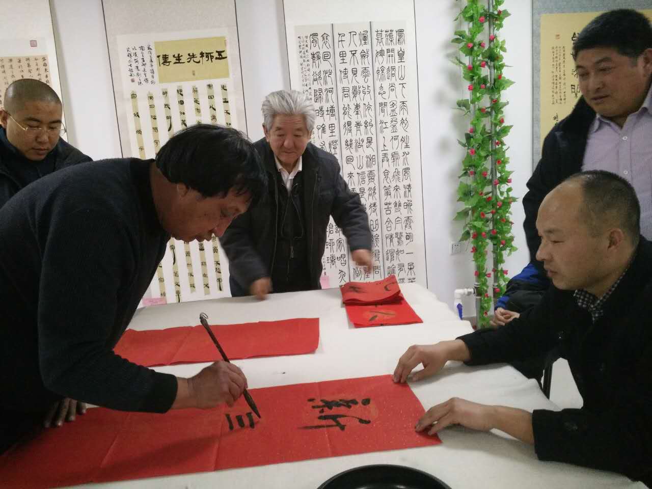 书法家在展览现场送春联