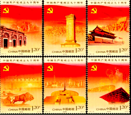 2011年6月22日,《庆祝中国共产党成立90周年纪念邮票》发行。主题为“开天辟地”“烽火岁月”“执政创业”“改革大潮”“世纪跨越”“科学发展”6枚邮票组成。