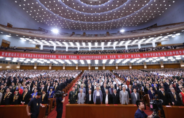 中央党政军群各部门和北京市主要负责同志,各民主党派中央、全国工商联负责人和无党派人士代表,老党员、老干部代表,受表彰的全国优秀共产党员、优秀党务工作者和先进基层党组织代表,在华工作的外国专家代表,首都基层党员和各界群众代表,解放军、武警部队官兵代表等约3000人参加大会。(完)