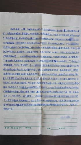 被性侵女生胡云(化名)的遗书。