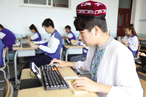 日前,天津市民族中专举办“同在一片蓝天,携手共创梦想”职业教育活动周?;疃芷诩?,该校举办了开放校园、引企入校、技能展示、专家讲座、法治教育、社会培训等系列活动,使社会了解、体验和参与职业教育,共享职教成果。图为学生进行计算机演示课。新华社发