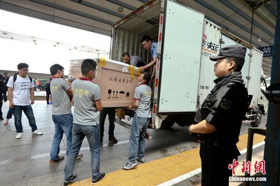 关键词:?;韬钅刮奈?#32;坐火车回南昌 特警护送