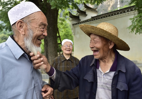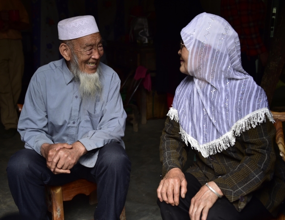 马继会老阿訇是湖北省十堰市郧西县湖北口回族乡湖北口村人,今年89岁,除听力下降外,身体健朗。老人在当地红岩清真寺当阿訇13年,常常告诫和引导信教群众在爱国的前提下爱教,并热心帮助周围群众化解邻里矛盾。在他的带动和影响下,当地回汉群众团结和睦。老阿訇膝下有7个儿子,现在四世同堂,子孙有49人,是当地的望族。老阿訇德高望重,晚辈孝顺,一家人其乐融融,享受着幸福生活。新华社记者 杜华举摄