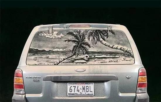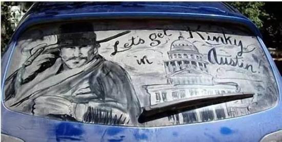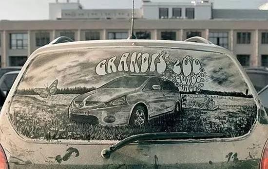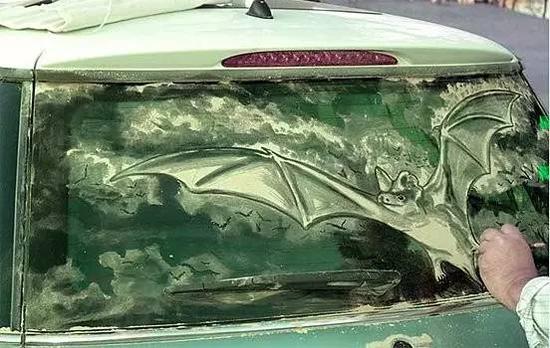 据说他4年未曾洗车,只为了能让车窗堆满灰尘。