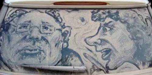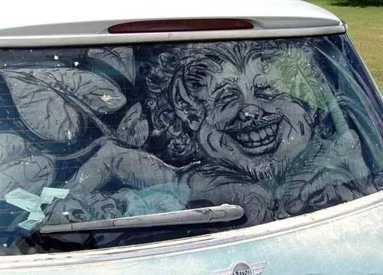 作为一块理想的“画布”,Wade的 迷你车的后车窗成为了他展示艺术的舞台,以下的这些作品很好的诠释了他的艺术灵感。