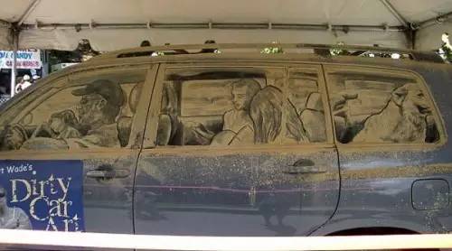 由于污染、天气等原因,汽车的车身不可避免地经常布满灰尘,这些“脏兮兮”的汽车,很容易让人反感并产生厌恶的情绪。来自美国的Scott Wade就是这样的一位牛人,利用车身上的灰尘,用手指头轻轻一画,用粗细不均的线条,勾勒出美妙的画面,形成了一种独特的,令人惊奇的灰尘画。