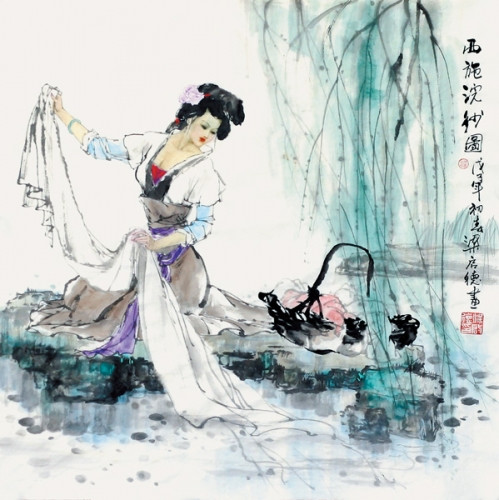 竹喧归浣女,莲动下渔舟。