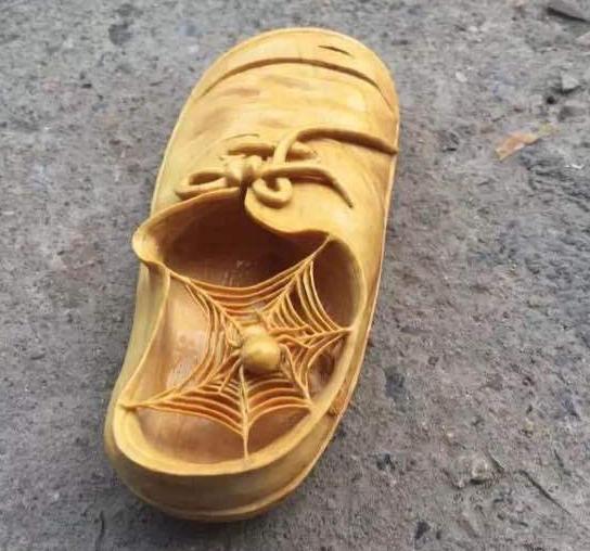 这双鞋子不能穿,其实是一款工艺品。是用老料崖柏制作而成,是不是突然觉得三千块钱不贵呢?