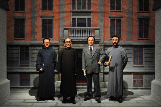 展览选取了34位有代表性的文化名人,设计了19个历史或艺术的场景,分为国学、文学与艺术三个方面。包括文学巨匠鲁迅、巴金、茅盾、曹禺,美术大师徐悲鸿、齐白石,音乐家聂耳、冼星海,京剧大师梅兰芳,建筑学专家梁思成与林徽因夫妇等。