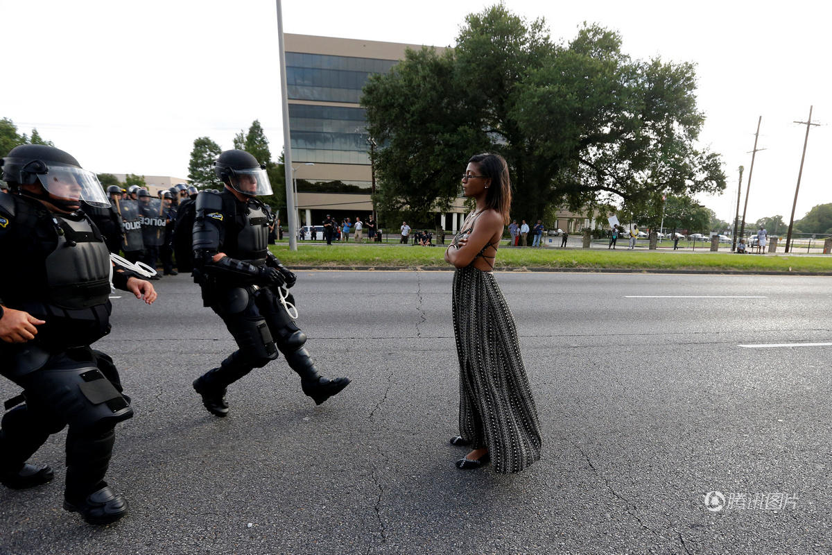 美国白人警察日前枪杀2名非裔美国人,使种族问题再次浮现,美国各大城市都出现大大小小的示威抗议。其中在路易斯安那州巴吞鲁日(Baton Rouge)的抗议活动中,全副武装的防暴警察逮捕一名手无寸铁的黑人女子照片吸引全球网友疯传,成为普通民众反抗压迫的又一象征。