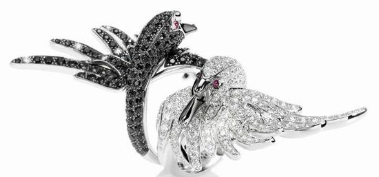 灵感来自柴可夫斯基的天鹅湖,Maison Boucheron将天鹅的形象运用在戒指、耳环、胸针、手镯等等配饰里,天鹅是一夫一妻制,寓意着永恒的爱意。