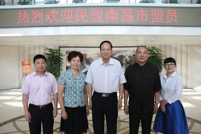 7月12日下午,民盟南昌市委员会领导班子一行4人在胡彬主委的带领下来盟中央机关交流座谈。张宝文主席亲切接见并合影留念,徐辉副主席和龙庄伟副主席分别与胡主委一行进行了座谈。