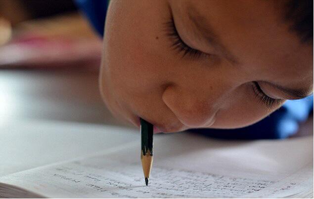 关键词:印尼无腿无臂男童 下巴玩游戏 用嘴写字
