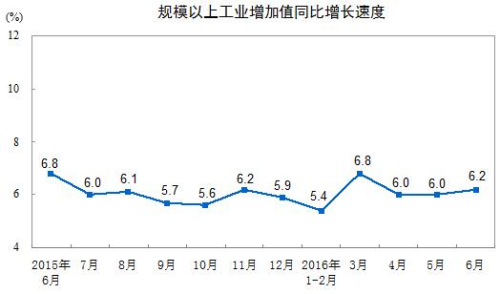 6月规模以上工业增加值增长6.2%2