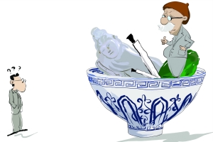 “国宝帮”的猖獗归根结底是很多收藏者一夜暴富的不端正心态所致。如今文玩市场上赝品数量巨大,抱着捡漏的心态容易上当受骗。刘嘉表示,多年以来,广大的爱好者收藏古玩都是习惯对照博物馆藏品的样子收藏,瓷器、玉器以及各种古玩,并且喜欢听信一些名头很大的专业人士的建议,认为在专业人士指导下对照馆藏品的样子购买,不是精品也是真品,这是一种错误的认知观念,因为真正的古玩专家是不会为外人鉴定的。(记者 徐磊 张茜琦/文 贾丛丛/漫画)