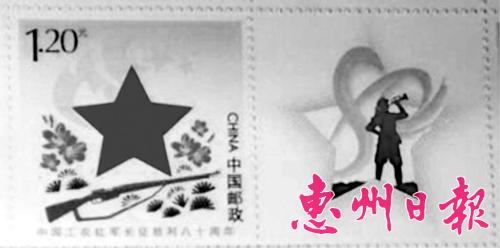 1936年10月,中国工农红军长征的胜利,充分表现了中国共产党人艰苦卓绝的斗争精神。这种精神是中国共产党及其所领导的红军发展壮大的精神力量,并给了全国人民巨大的鼓舞。为纪念中国工农红军长征胜利80周年,中国邮政于2016年7月8日发行 《薪火相传》个性化专用邮票一套1枚,邮票面值1.20元。邮票主图由闪闪的红星、熊熊的火炬、红杜鹃、长青的松柏枝和步枪构成,底部有“中国工农红军长征胜利80周年”字样。