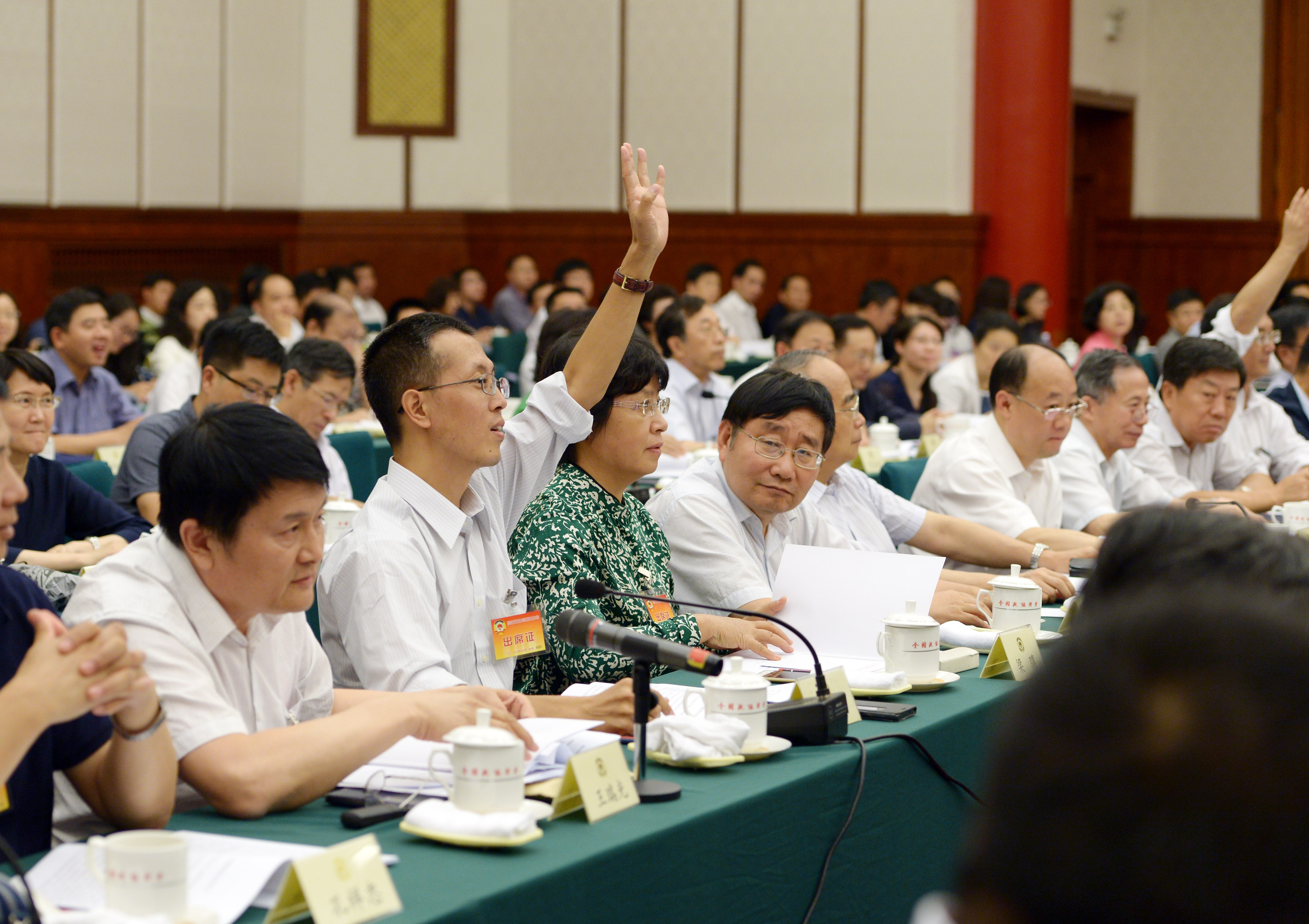 在全国政协“东北三省工业转型升级问题”专题协商会上,与会委员争先举手发言。