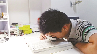 宋奕辰必须依靠放大镜或助视器才能看清文字