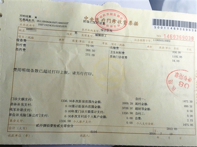 华信医院开具的救治胡勇时的收费票据。受访者供图