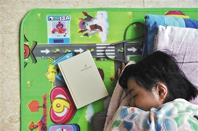 昨日,307医院,为省钱,已办理出院手续的妞妞睡在医院大厅。此前,她和奶奶、三姑吃了自制的臭豆腐中毒。