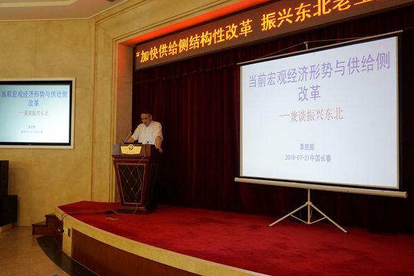 辜胜阻在题为“当前宏观经济形势与供给侧改革-—兼谈振兴东北”的主旨演讲中提出,当前全国宏观经济进入缓中趋稳的新常态,同时又呈现出困难与希望同在、压力与潜力并存、痛点与亮点兼备的特点。针对近期国内尤其是东北地区出现的民间投资比重和发展速度急剧下行的问题,辜胜阻强调,民间投资下行的两大动因是民营企业的能力和动力问题,稳定民间投资增长,要让民企有能力、有空间、有钱、有动力投资,推动创新驱动与供给侧结构性改革,推动企业转型升级,使资源流向更有潜力的新兴产业,提升投资质量、拓宽投资领域、优化投资环境。辜胜阻还基于大量经济数据指标,对吉林省各地政府积极有为、经济总量增速稳步提升、固定资产投资和民间投资均保持增长表示了肯定,并为振兴东北开出国企、民企、要素、人才四个药方。