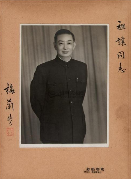 附图1、梅兰芳黑白照片一张(2005年北京诚轩5940元成交)