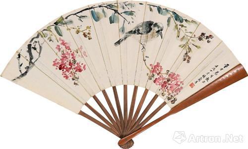 附图4、梅兰芳1922年作 红花小鸟 成扇 (2009年上海崇源56万元成交,估价6—8万元)