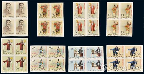 附图7、纪94梅兰芳舞台艺术无齿邮票四方连八全 (2011年嘉德46万元成交)