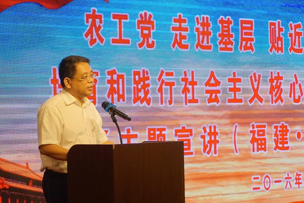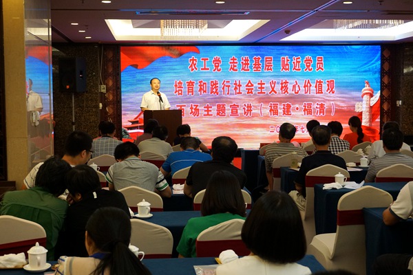 2016年7月26日,农工党“走进基层、贴近党员、培育和践行社会主义核心价值观”百场主题宣讲报告会在福建福清举办。农工党福建省委会专职副主委杨琳出席宣讲报告会并讲话。中共福清市委常委、统战部部长陈存枫,中共福清市委统战部常务副部长何文金应邀出席。农工党福建省委会宣传部部长田东、福州市委会专职副主委陈向红、农工党福清市委会主委薛锋全程参与。宣讲报告会由农工党中央宣讲报告团领队刘保明主持。