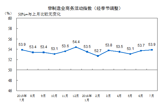 7月中国非制造业PMI为53.9% 连续两月回升