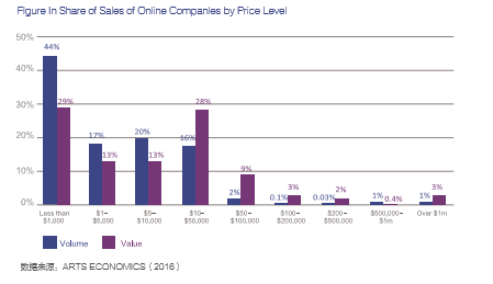 聚焦中国,艺术品电商也是风起云涌,赵涌在线、易拍全球、盛世收藏、艺典中国、大咖拍卖、 雅昌兜藏、雅昌在线拍等交易平台崛起或试水,这些平台主要面向 C 端用户,新兴藏家和艺术品消 费者为主,主要经营中低档艺术品、艺术衍生品、艺术复制品等,作品价位主要集中在五万元左右。 由于艺术品的特殊性及电商平台的交易特性,艺术品电商仍处于不断试错、培养藏家等初级阶段。 但艺术品电商在一定程度上扩大了艺术品交易机会,壮大了艺术品收藏消费群体,活跃了艺术品低 端市场,加快了艺术品消费市场的发展。