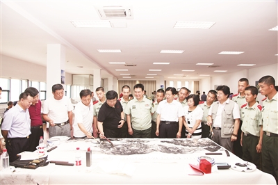 今年是中国人民解放军建军89周年,也是红军长征胜利80周年。本次慰问活动得到了武警部队首长和艺术家们的大力支持。图为民革山东省委会副主委、民革中央画院副院长孔维克等艺术家为官兵挥毫作画。