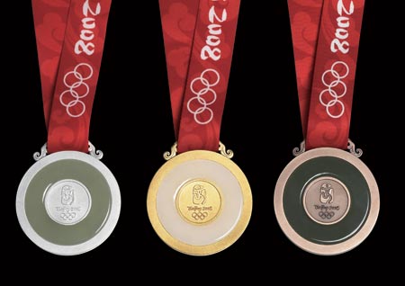 而北京奥运会“金镶玉”奖牌则在最具创意奖牌与最美奖牌的评选中很有竞争力。北京2008年奥运会奖牌直径为70毫米,厚6毫米。奖牌正面为国际奥委会统一规定的图案——插上翅膀站立的希腊胜利女神和希腊潘纳辛纳科竞技场。奖牌背面镶嵌着取自中国古代龙纹玉璧造型的玉璧,背面正中的金属图形上镌刻着北京奥运会会徽。