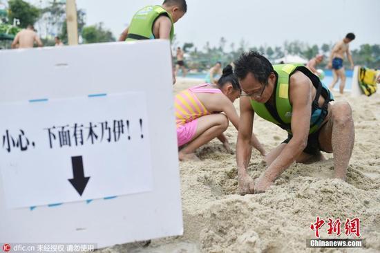 2016年7月30日,河南洛阳,洛龙区一水上乐园景区,为在高温下吸引游客,特意举办沙滩“万元钱币”挖宝比赛, 活动主办方将50元、100元、500元、1000元面额不等的韩国、美国等外国钱币埋在沙滩内,游客可在规定时间内比赛挖的面额大小。在当天38℃的高 温下,游客顾不得小铁锨,而是坐在地上,甚至跪在地上,用双手往下刨,最多的游客可以挖到几千元不等的外国钱币。据工作人员介绍,部分上百元或上千元的外 国钱币,兑换中国人民币也就几块钱最多几十元。
