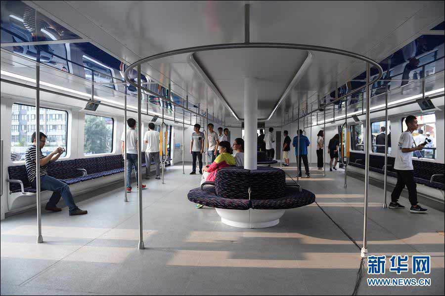 车厢内有55个座位,乘客区设有20根竖立扶手,满足高峰时段不同身高站立乘客的需求。同时,车体配备多个液晶电视屏幕,方便各个角度的乘客观看。此外,还安装了4个动态地图,便于乘客查看整个城市的交通状况。