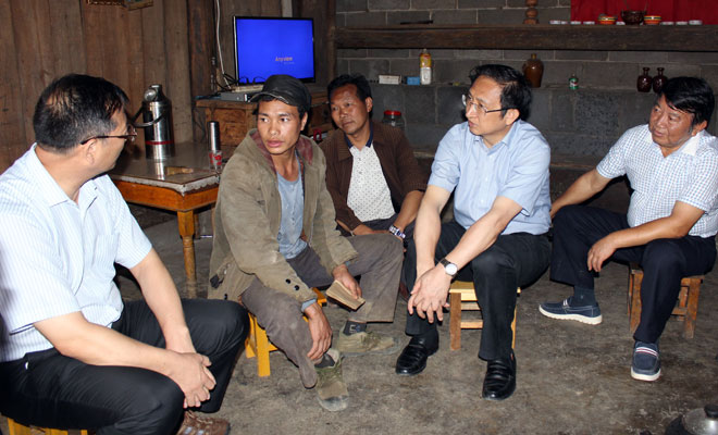 龚建明与保山市腾冲市猴桥镇猴桥社区国门新村贫困农户交谈
